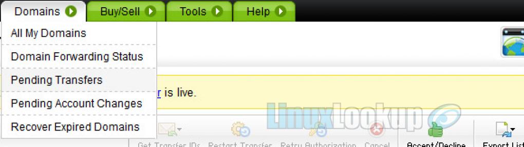 Login into GoDaddy again, click on the Domain tab then navigate to Pending Transfers.
